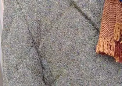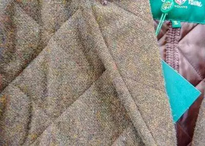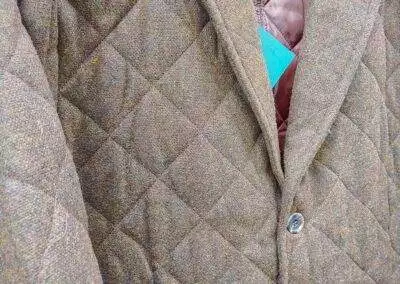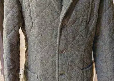 Steppsakko, Wollgewebe, Cordkragen, mittiger Rückenschlitz, zwei Aussentaschen. In England fachmännisch in der ikonischen Rautensteppung geschneidert, für den klassischen „Countrylook“ auch hierzulande.