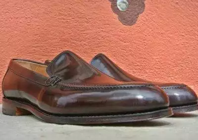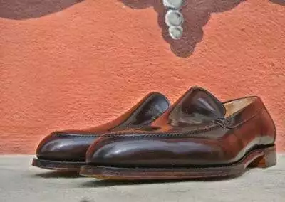 Maronite Brown Polished Leather, Goodyear, Single Leather Sole, Cork Inlay, Full Leather Lining, Last 241, Fitting F, UK Sizes 11,  € 399,- jetzt € 299,-