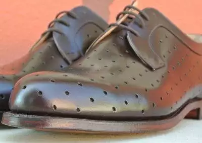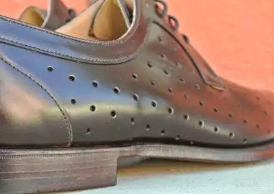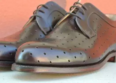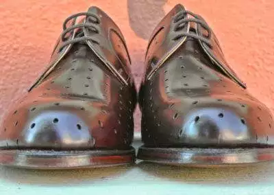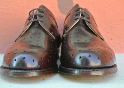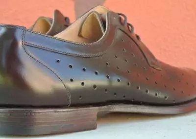 Dunkelbraunes Cavalry-Kalb, leicht asymetrischer Wiener Leisten No. 298, nach dem Goodyearverfahren rahmengenäht, Ledersohle, E Weite, englische Größen