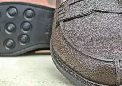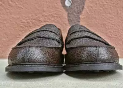 Norweger in dunkelbraun Scotchgrain auf Dainite Sohle, rahmengenäht in Wien, englische Leisten, halbe Größen, Leisure Class Edition, € 398