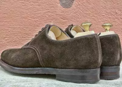 Dark Brown Suede / Full Leather Lining / Goodyear Welted / 6mm Vibram Rubber Sole on Midsole / Last 377 / Fitting E / UK Sizes 9,5 / € 456,50 jetzt € 399,-