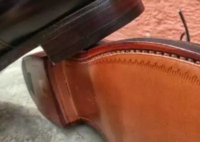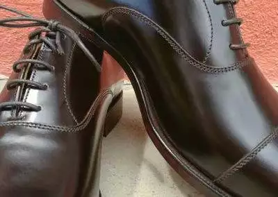 Dark brown boned Calf, Five Edge Leathersole, Goodyear welted, Calf Leather Lining, Cork Inlay, Fitting E, new Last 379, UK Sizes