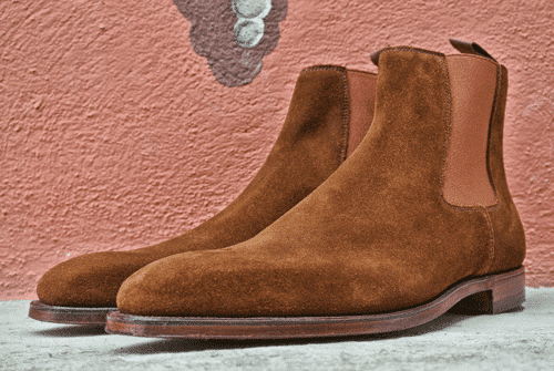 Schuh des Monats September 2019 Tobacco Suede, double Elastics, 6mm Vibram Rubber Sole on Leather Midsole, Goodyear welted, full Leather Lining, Cork Inlay, Last 348, Fitting E, UK Sizes