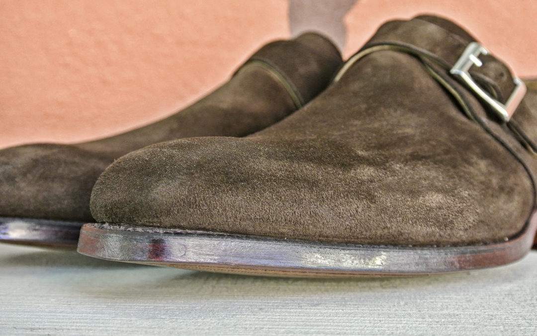 Schuh des Monats September 2017 Dark brown Roughout Suede / Full Leather Lining / Goodyear Welted / 6mm Vibram Rubber Sole & Midsole / Silver Buckles / Last 348 / Fitting E / UK Sizes